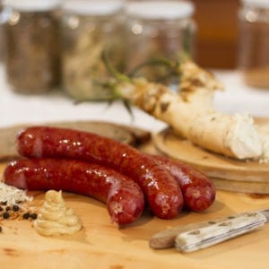 | Zutaten | Schweine- und Rindfleisch (93,7 %), Gewürze, Speck, Speisesalz |
