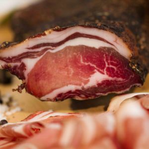 Aus dem Nackenstück vom Kärntner Freiluftschwein wird der zarte Osso Collo hergestellt. Fein aufgeschnitten, dazu ein gutes Bauernbrot, schmeckt der Osso Collo am besten.