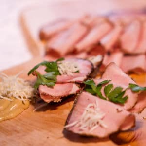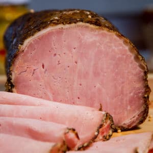 Das Pfefferkarree ohne Schwarte schmeckt durch die Pfefferschrothülle ganz speziell.